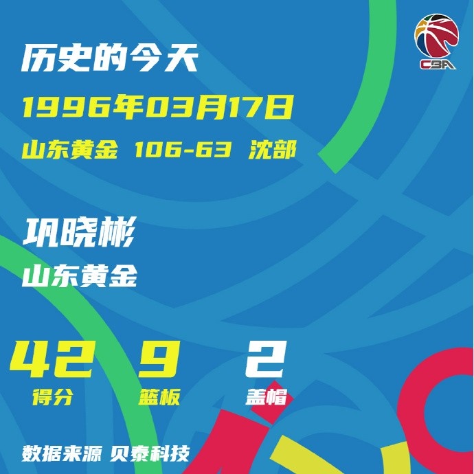 3月17日讯 今天,CBA官方晒出“历史上今天”的一组数据,具体如下: