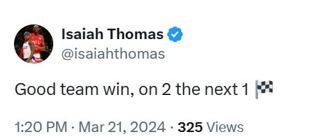 赛后,小托马斯更推道:“很棒的球队胜利,下一场比赛继续。”