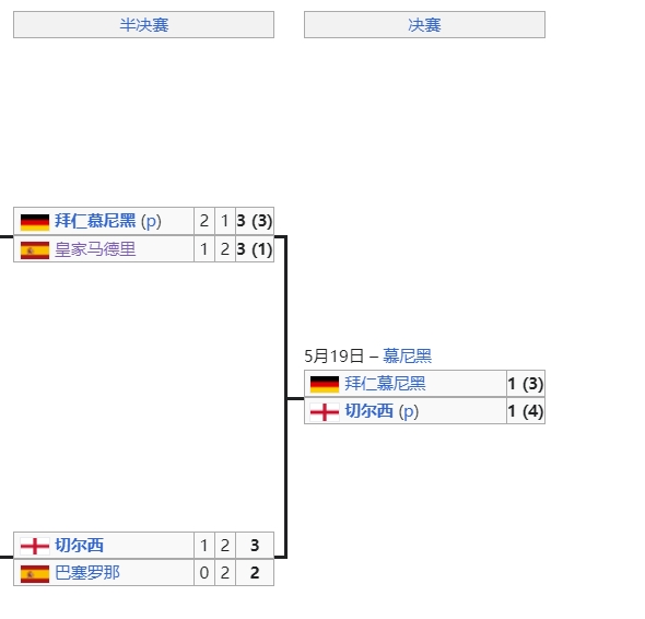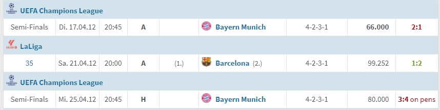 那个赛季皇马、巴萨上演“内战”,穆帅皇马百分夺冠。但是西甲双雄却双双栽在了欧冠半决赛,皇马点球不敌拜仁,巴萨输给了切尔西。